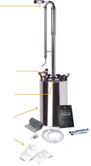 Качественная очистка за счет высоты колонны и конструкции дефлегматора и охладителя в её составе. Напиток укрепляется многократно. Головы легко отделять, а хвосты отбирать не нужно!Процесс останавливается сам.